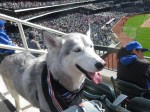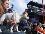 How lucky are we to attend a Major League baseball game?! The Mets organization teams with animal charities to host dog-friendly Bark in the Park events two times each season. The spring game took place this weekend at Citi Field and benefitted North Shore Animal League America. Hundreds of doggies took part in a field-level doggy parade and then watched the game from the Pepsi Porch. The first 500 pups received cute Mets-themed bandanas.