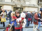 8 AprWesties, Scotties, and ponies — oh my!! Just under 100 cute terriers marched in NYC’s annual Tartan Day Parade this year on Saturday afternoon. We met along West 44th Street to greet the other doggies, listen to the bands practice, and ooh and aah over cute pups dressed in Highland kilts. We even met the famous “sweater” ponies who are promoting Scottish tourism. The Shetland ponies were so cute and so calm. Especially with dozens of yapping terriers all around them! The marching kicked off around 2 pm. We headed north on Sixth Avenue up to Central Park. Most of our friends had a doggy lunch date in the park. Mom had to get us home early for another event . . . Our pup diary is always full!